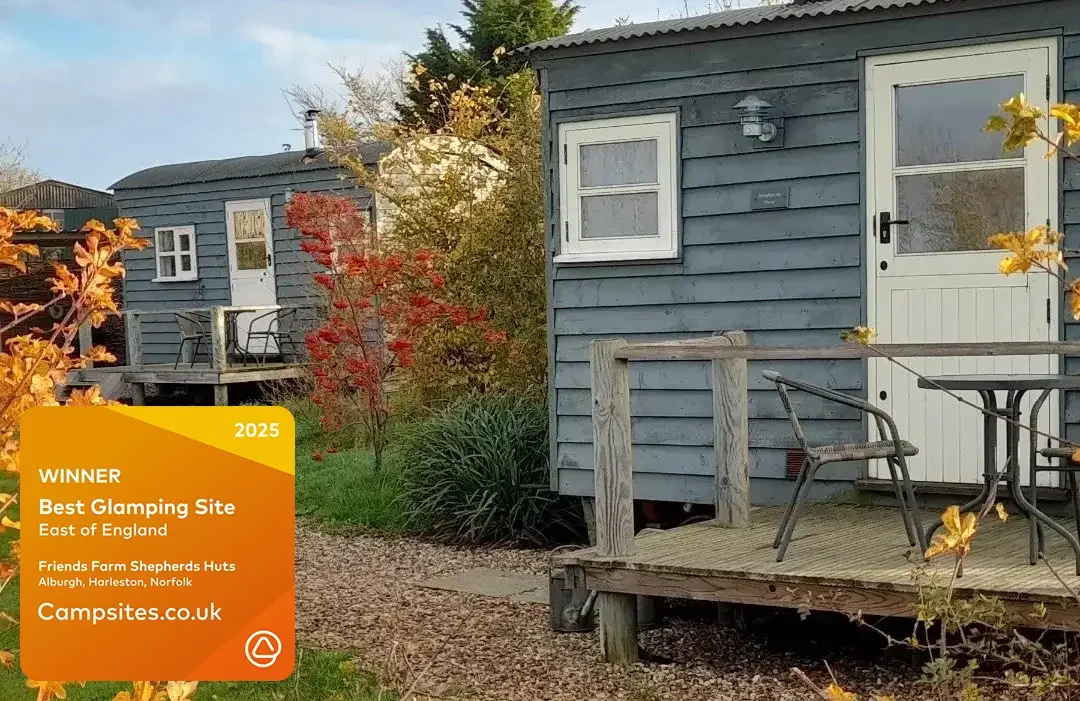 Two luxury self-catering shepherds huts set on a working smallholding in the beautiful Norfolk countryside.